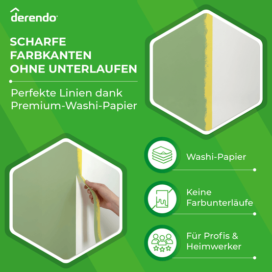 Derendo® Washi Tape Malerkrepp Premium – Goldband für scharfe Farbkanten